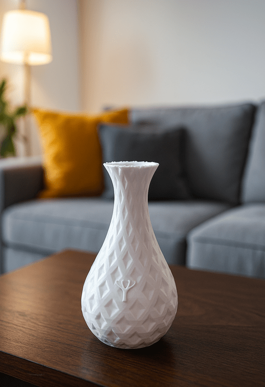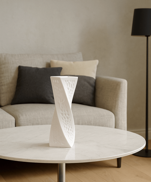 A vázák könnyű PLA anyagból készülnek. Bár az anyag vízálló, a könnyű súly miatt dekorációs célú használat esetén (például száraz virágokhoz vagy önálló díszként) a stabilitás érdekében súlyozás alkalmazása javasolt a víz helyett.